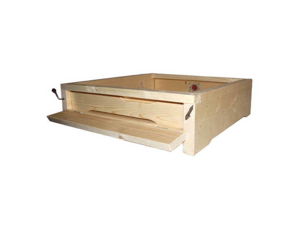 Varroa dno: Dřevěné dno je určeno pro úl rámkové míry 39x24 cm. je vhodné pro úlovou sestavu se sponkami. Díky němu můžete sledovat spad po celém půdorysu v kteroukoliv roční dobu. Úlové dno větrá i během horkých letních dnů při zúžení česna proti loupeži. Je vhodné také při dokrmování včelstev na zimu. Dno můžete používat i jako pylochyt. Pylochytová vložka je zasouvána pod hranu zadní příčky, v níž se nachází obrtlík. Ve spojení s nástavkem jej můžete používat na sklepání roje či nametání smetence.