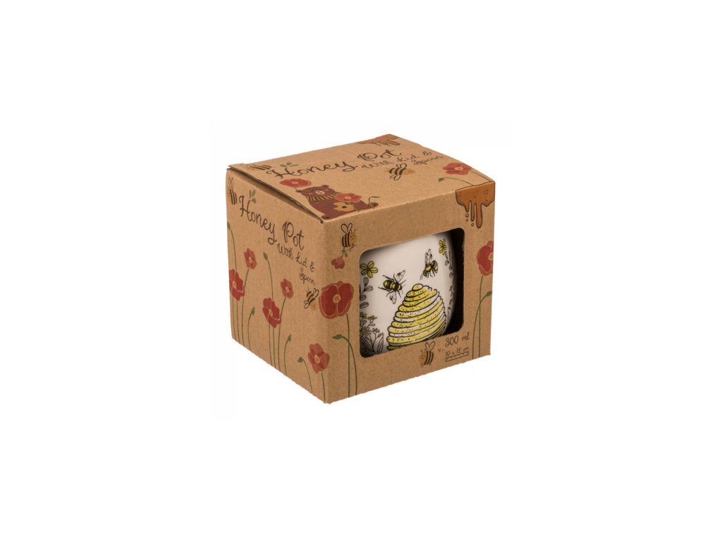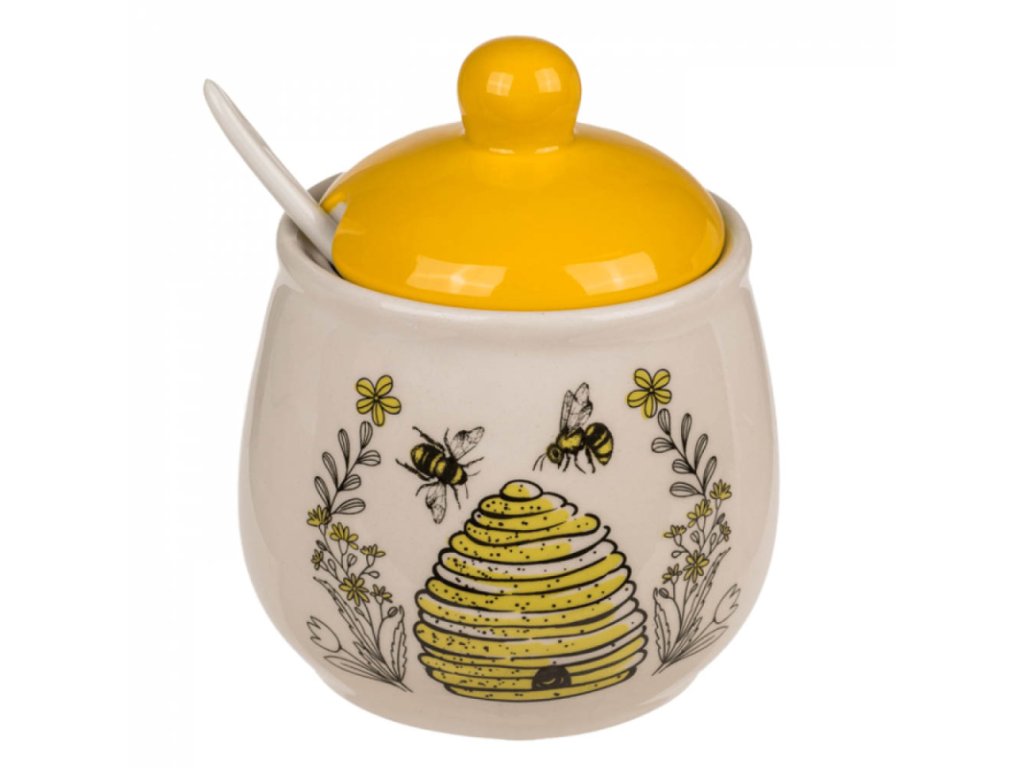 Keramická dóza na med nebo cukr se lžičkou a víčkem.