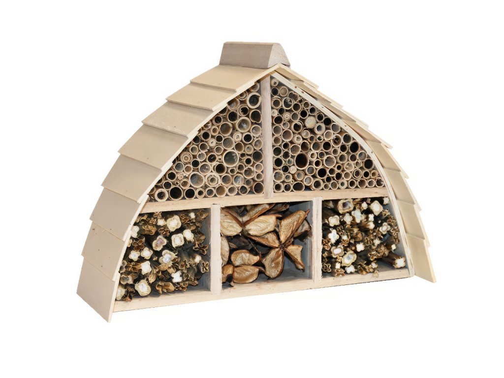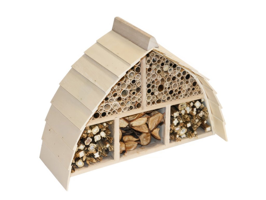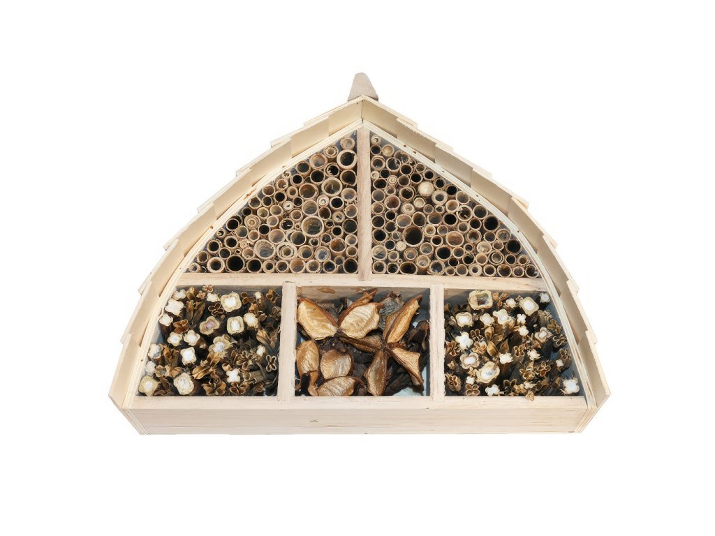 Vhodný úkryt pro divoké včely, cizopasné vosy, lacewings a berušky. Vyrobeno z přírodních materiálů, jako je dřevo a bambus.