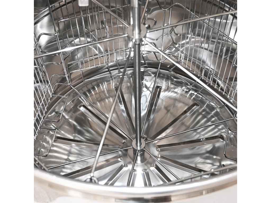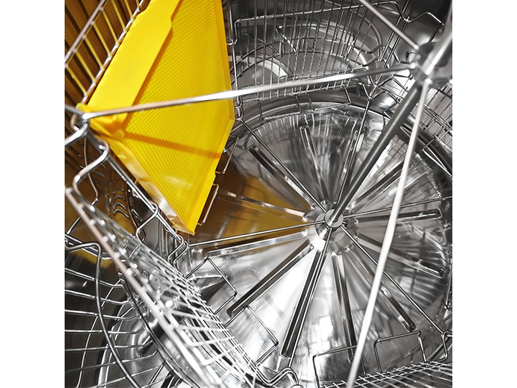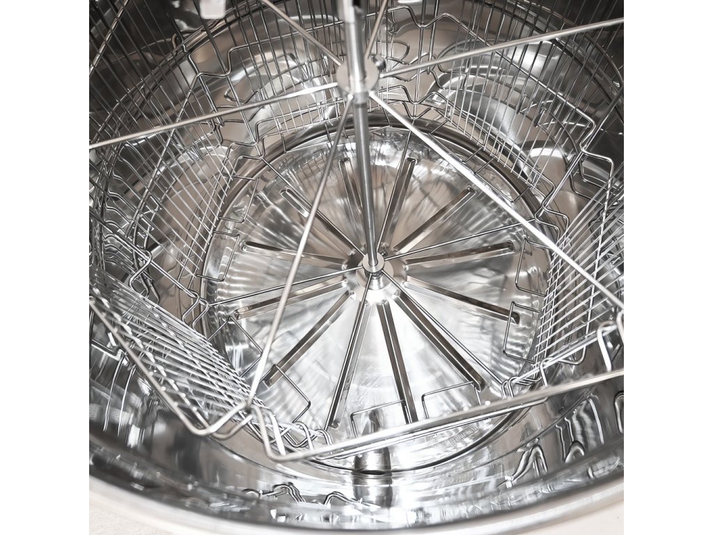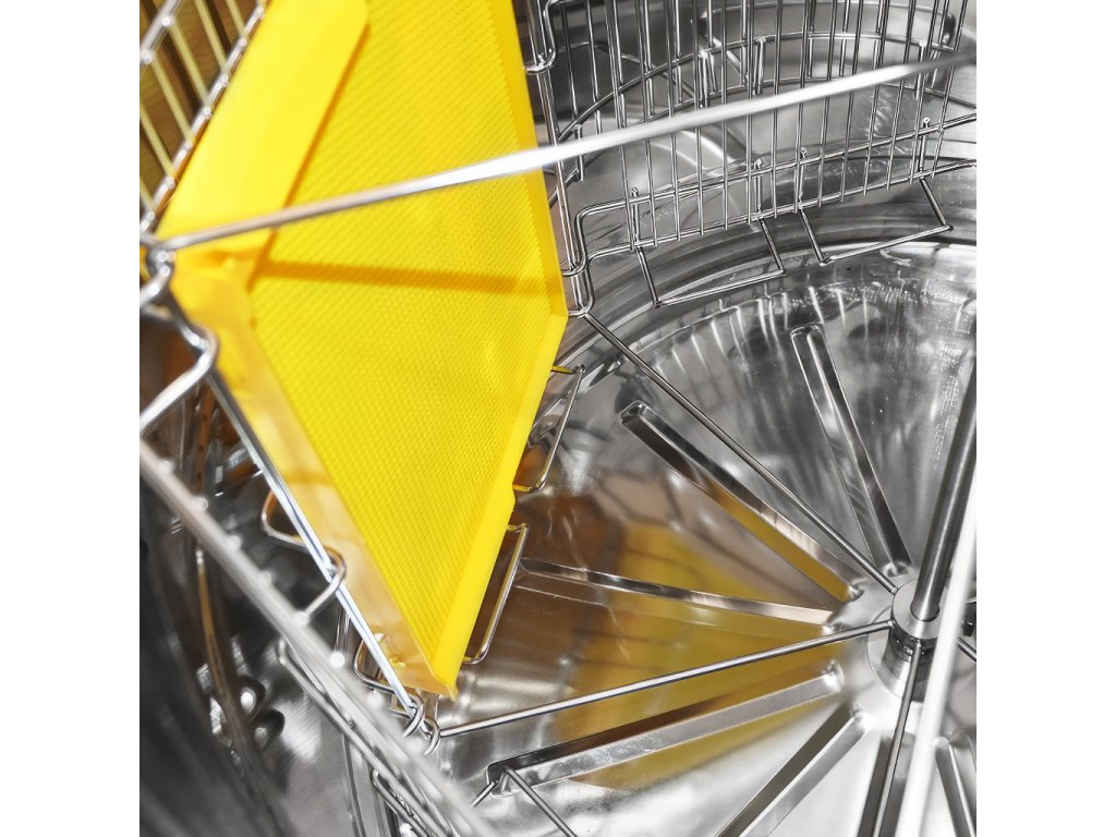 Tangenciální medomet na šest rámků s elektrickým pohonem 230 V o výkonu 110W. Šířka koše je 25 cm, medomet je tedy vhodný na většinu rámků. Medomet je vyroben z leštěných nerezových plechů, splňující atesty pro styk s potravinami. Vrcholné provedení s kónickým dnem a mnoha dalšími inovativními prvky.