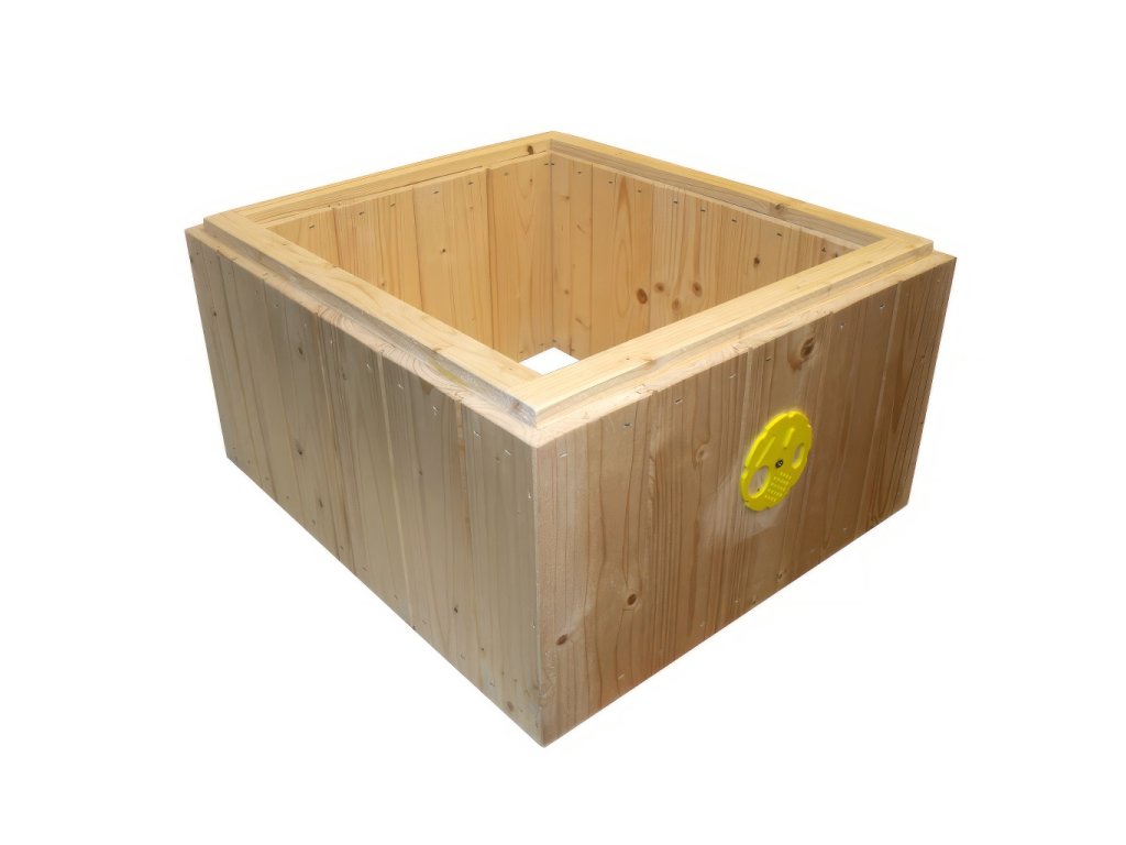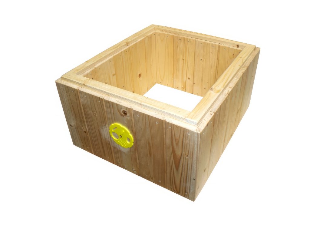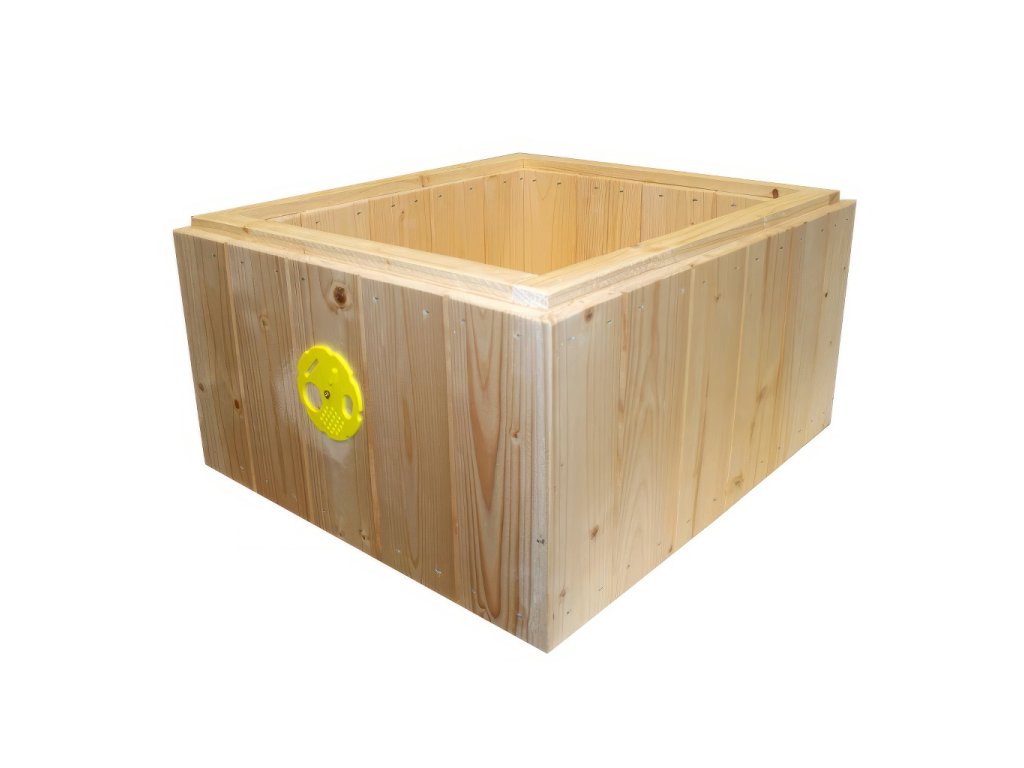 Palubkový, zateplený nástavek velikosti 39x24 pro 9 rámků. Vyroben z kvalitních palubek, spojován sponkami za současného použití lepidla s 2 cm polystyrenovou izolací. Tato varianta je určena pro úly Tachov, které naleznete v naší nabídce. Do předního čela nástavku je uprostřed vyvrtáno oko o průměru 2,5 cm, česnový otvor je pak opatřen česnovým kolečkem. Jednoduché, praktické provedení nástavků za rozumnou cenu z nich dělá ideální volbu pro většinu včelařů, kteří hledí na cenu a funkčnost.