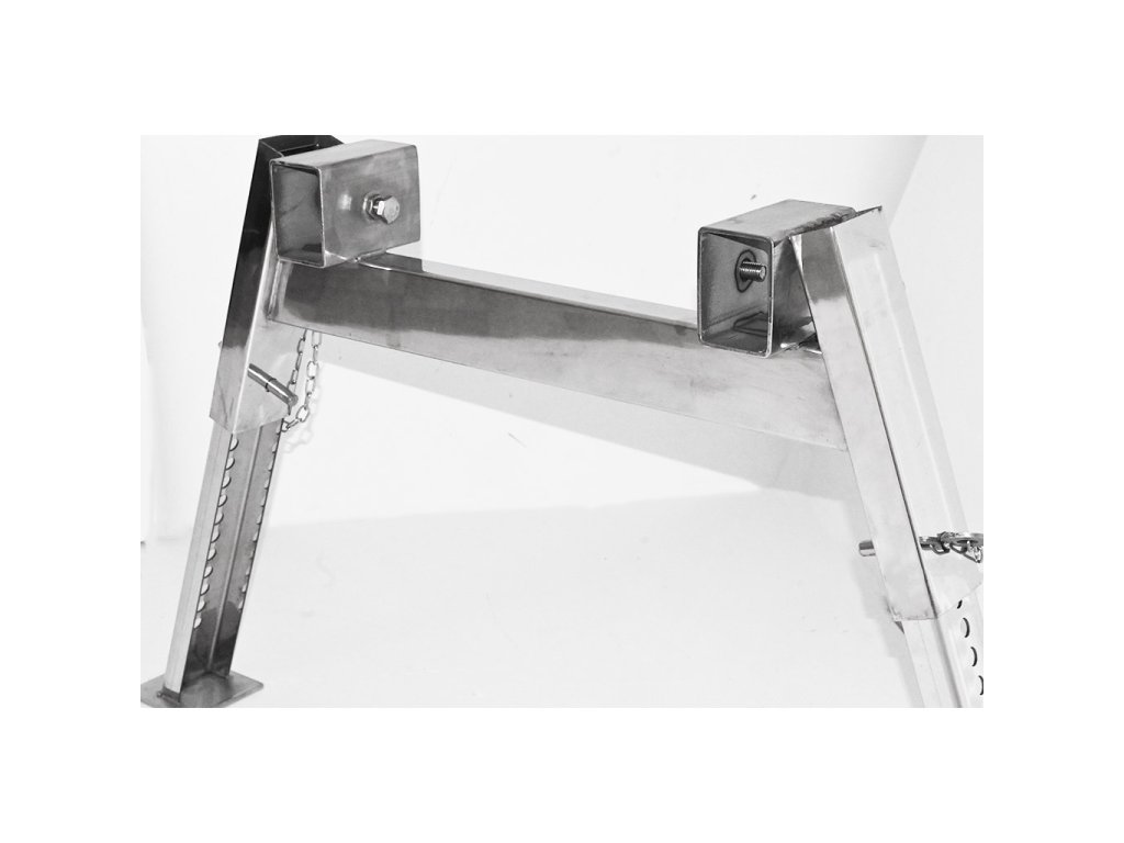 Ke kompletnímu sestavení jsou potřeba dva stativy a dvě dřevěné latě o rozměrech 40 x 60 mm. Stojan pod úly z nerezové oceli s dlouhou životností. Po složení tvoří pevnou univerzální lavici. Stojan má výškově nastavitelné nohy, což umožňuje jeho použití i na nerovném terénu.
