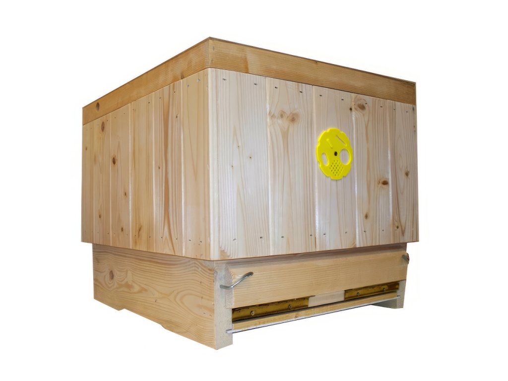 Kompletní úl Tachov s jedním nástavkem na 9 rámků 39x24. Součástí tohoto úlu je vysoké celozasíťované varroa dno s plastovým vysunovacím šuplíkem, jeden nástavek rámkové míry 39 x 24 a sololitové víko. Nástavky i víko jsou izolovány dostatečně silnou vrstvou polystyrenu. Konstrukce úlu je z palubek, spojované pomocí sponek a lepidla.